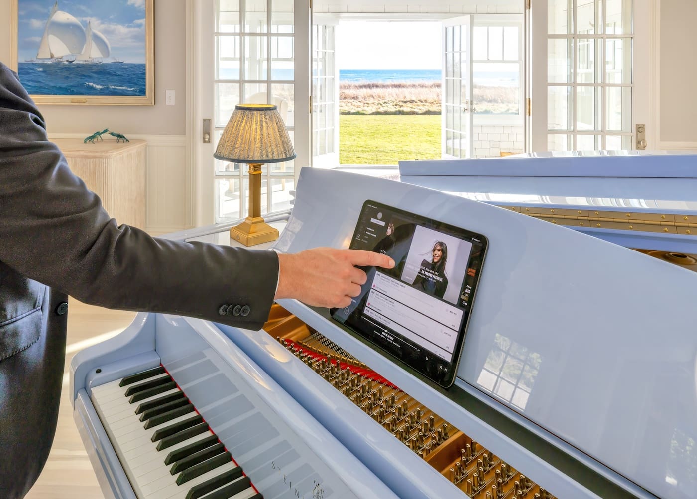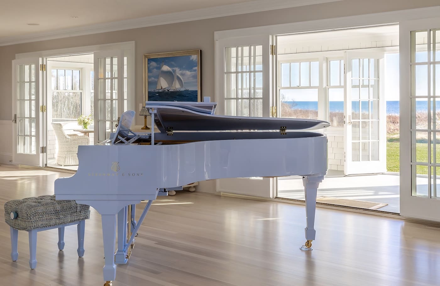 When a couple sought to fill a void in their newly redesigned Back Bay home, they knew exactly where to turn: M. Steinert & Sons, New England’s premier piano merchant and the area’s only authorized dealer for Steinway & Sons pianos, the world’s preeminent piano manufacturer. The couple chose an ebony polish Steinway Spirio for the Back Bay residence and were so inspired by the Spirio technology, they decided on something unique for their home on Cape Cod.  Marking their fourth piano purchase from M. Steinert & Sons, their latest model—a custom light blue Steinway Spirio with a diamond gloss finish—blends quality design and renowned Steinway craftsmanship with modern innovation.