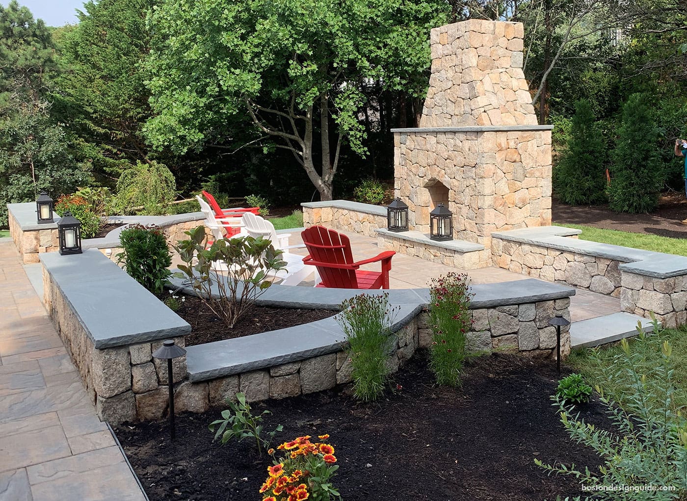 Landscape design by Pellettieri Associates, Inc.; fireplace mason: Mark James Stone Masonry, LLC; photo by Jeff Sinon