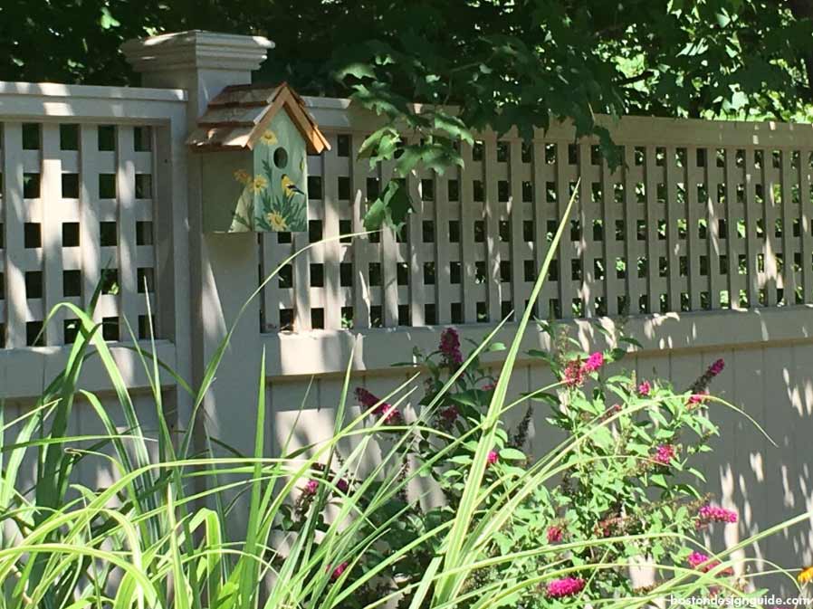 While it may look as though it was constructed with the home onsite, Colonial Fence Co. crafted the pergola in-house out of solid cellular vinyl, which, says the firm, is “a maintenance-free material that emulates the look and feel of real wood while providing the ultimate in durability.”
