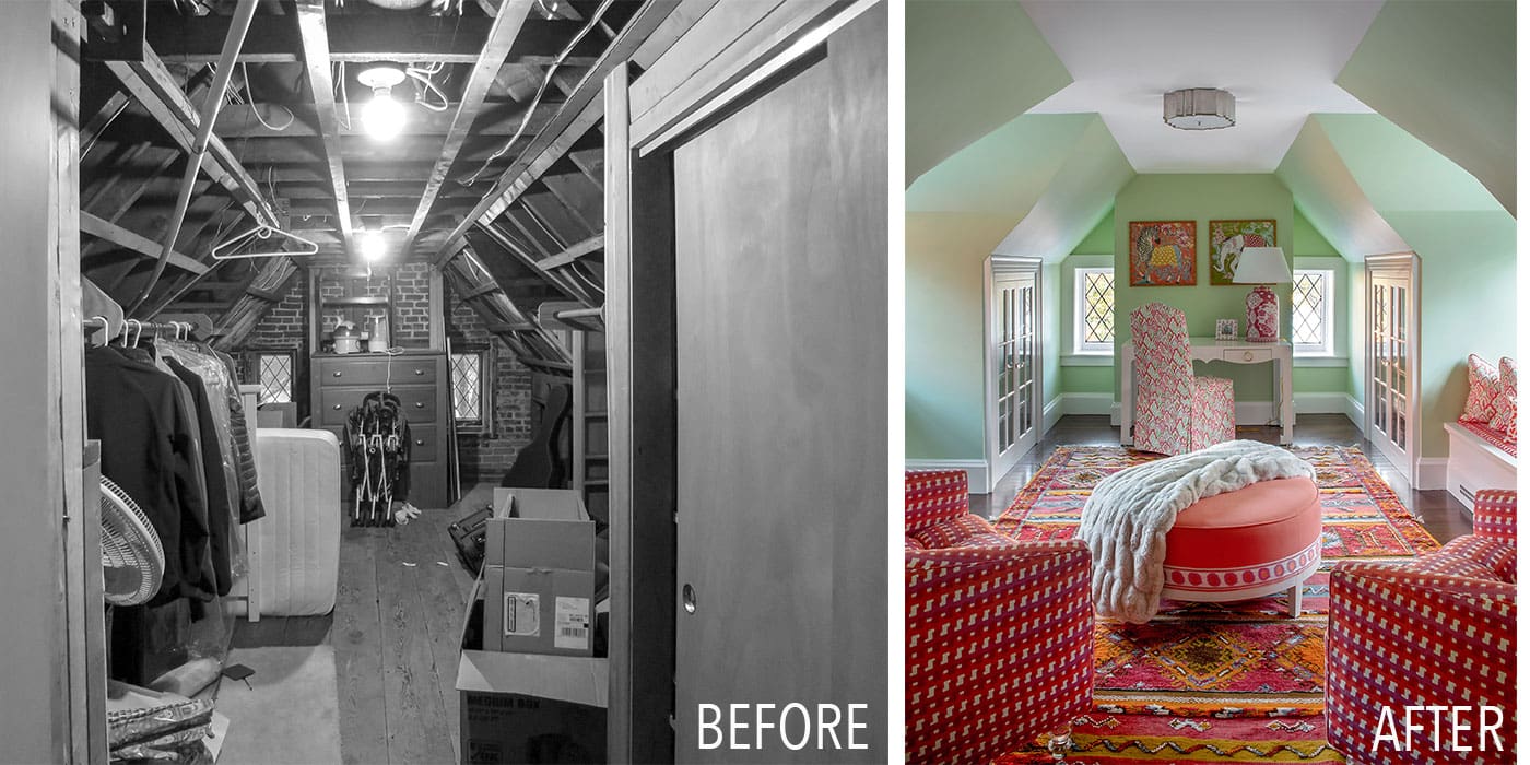 JGA also renovated portions of the existing home, like an attic-turned colorful home office (pictured above), updated bathrooms, and converting the old kitchen into a cozy library. The firm had to think like preservationists, as well as revolutionaries, weighing when to keep what exists and when to make a change. Solutions went through many iterations; “But when we got it, we knew,” enthuses Powell.