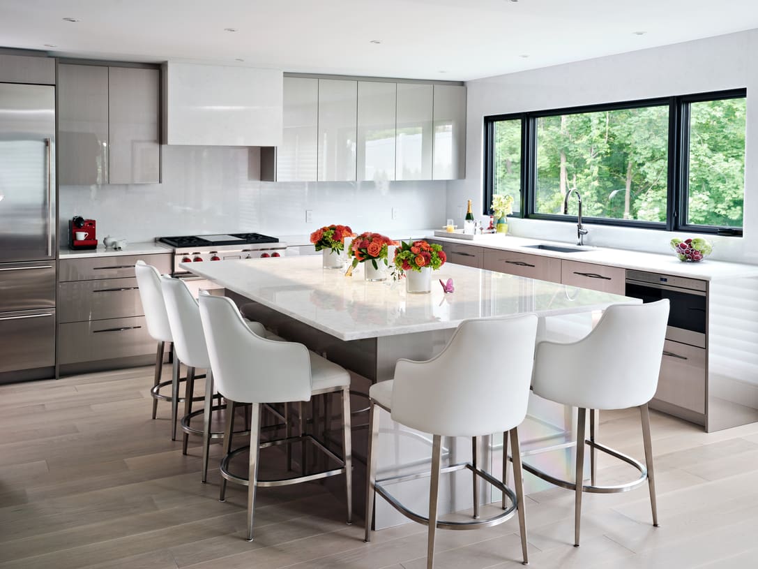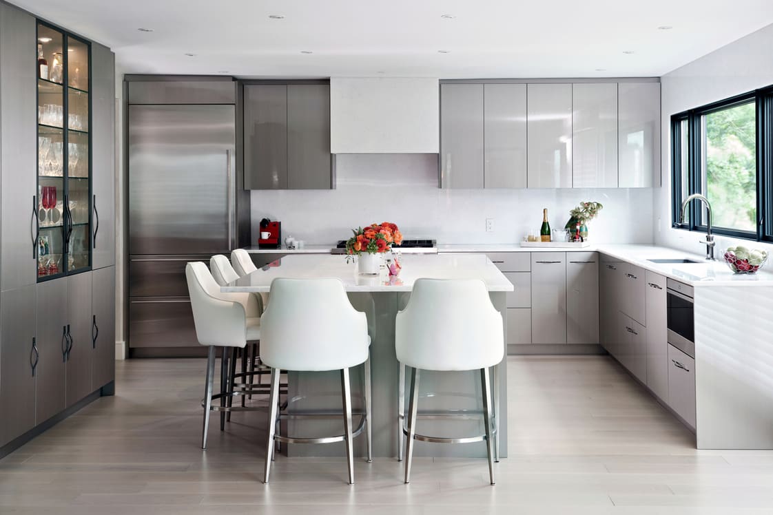 And when it came to the look of the kitchen, the NKD owners chose a non-traditional high gloss finish to reflect the more modern living space nearby. “Because of the windows, it makes the room look bigger and makes the living area look like part of the kitchen,” Pierre said. “When reflective, it doesn’t read as kitchen cabinetry, it reads more like furniture.”