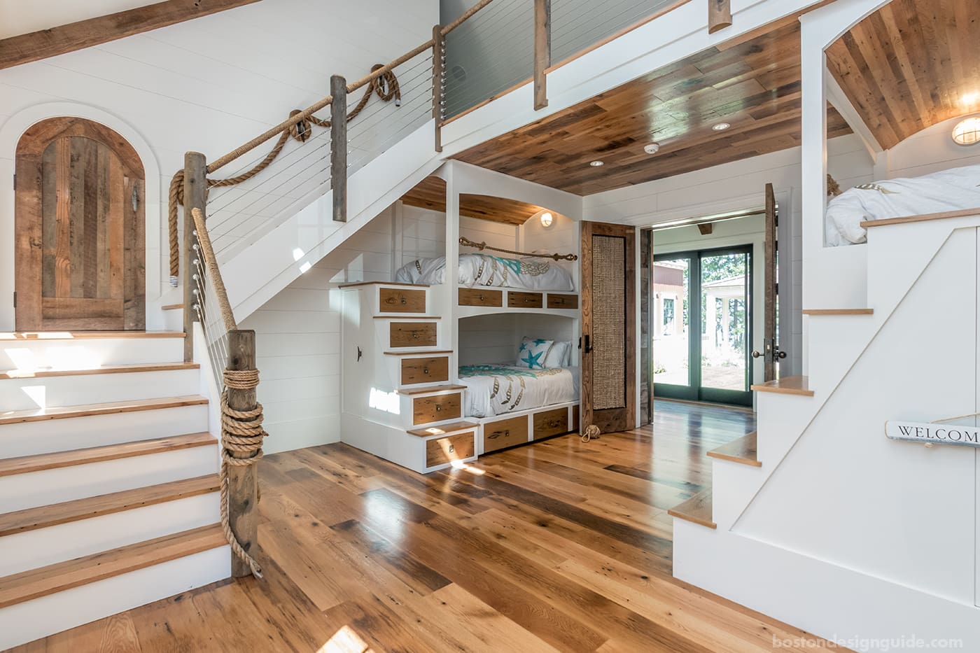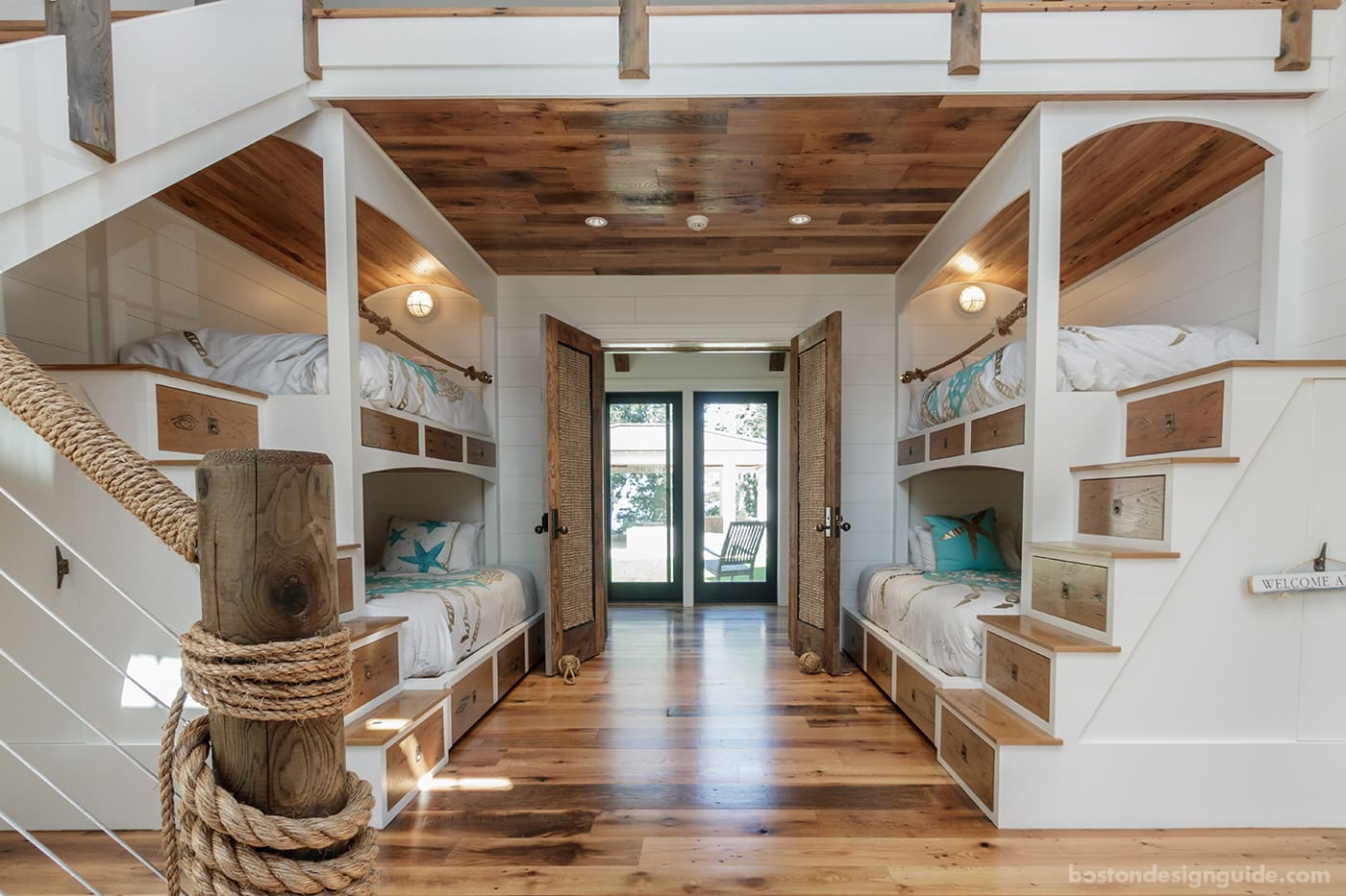 Cape Cod bunk room with rope accents by BPC Architecture