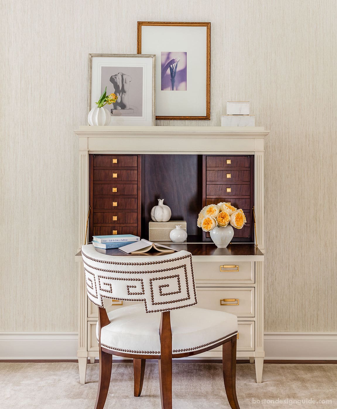 Custom writing desk and bedroom office by Betsy Bassett Interiors