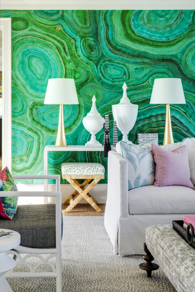 This bold hand-painted malachite mural challenges the status quo. blakelyinteriordesign.com