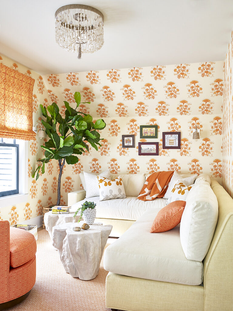 Hues of pale yellow and orange combine to make for an energetic palette. slcinteriors.com