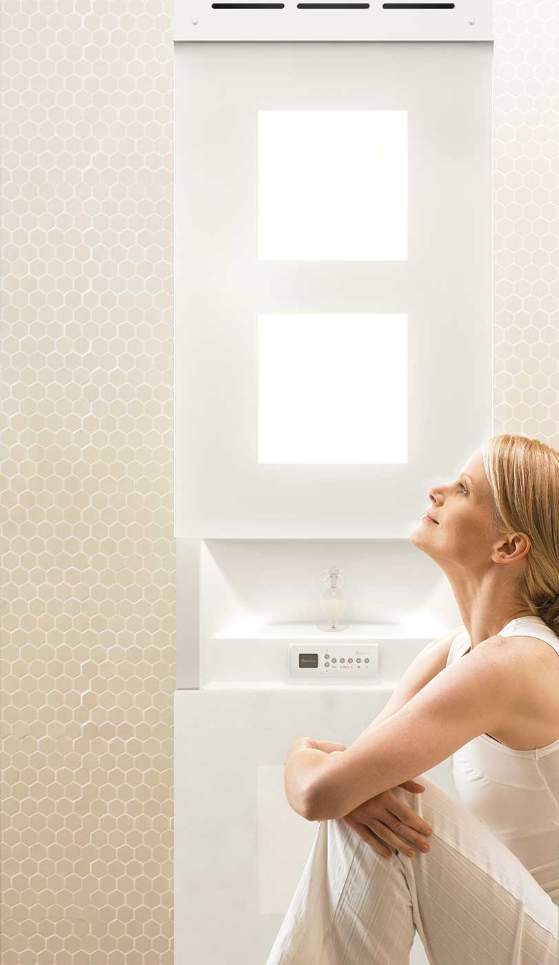 Created for use in the shower, Vedana combines five therapies that heal and nurture the body, mind and spirit: Thermotherapy (using dry heat to stimulate metabolism and soothe muscles); Chromatherapy (a treatment incorporating color to stimulate or calm); Light Therapy (improving mood and sleep); Aromatherapy (diffusing essential oils to quiet and elevate mood) and Sound Therapy (reducing stress, re-establishing physical and emotional equilibrium).