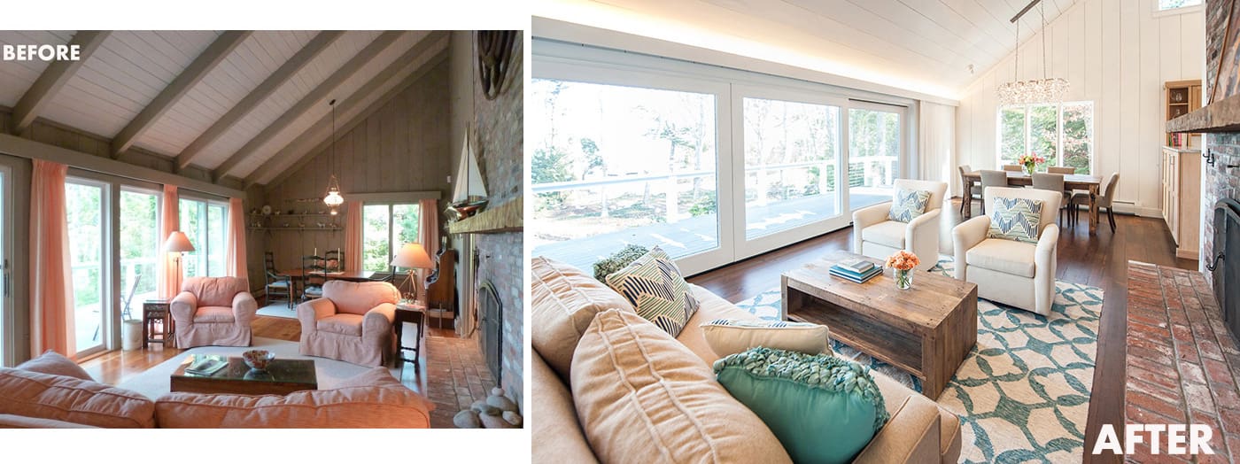 Although much of Salt Architecture’s work trends contemporary, they approach each renovation with the client’s preferences, first and foremost. “We aim to make things more consistent and cohesive in terms of design,” says Alissa. Take window styles, for example. The firm selects either traditional or contemporary options by considering what is “more predominant in the house” or “what fits the new house style best,” and they run with it throughout. For Scraggy Neck, the owners wanted a modern look, so all the existing wide-plank wood walls and ceilings were painted a bright white.