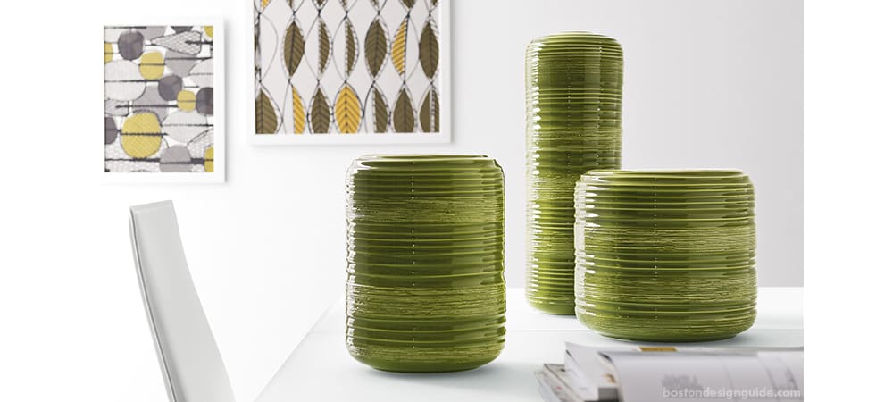 Lovers of contemporary European design have Calligaris’ ceramic vases from IL Décor on their wish lists. Shown here in glossy green, the Tristan vase, with its cylindrical shape and embossed multi-line pattern, epitomizes the Italian-born maker’s commitment to its artisanal tradition. Available in multiple hues and shapes, these vases take center stage wherever they’re displayed.