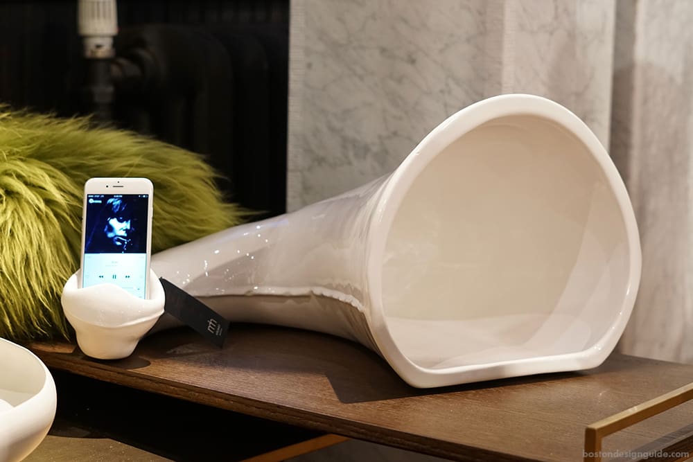 We love gift ideas that have an element of humor as well as good taste. Enter the porcelain white horn speaker at Marc Hall Objekt. Made in the Netherlands, this coveted cream-colored amplifier is a unique way to add music to your cocktail party. Completely wireless, the vintage concept incorporates modern technology and complements any aesthetic.