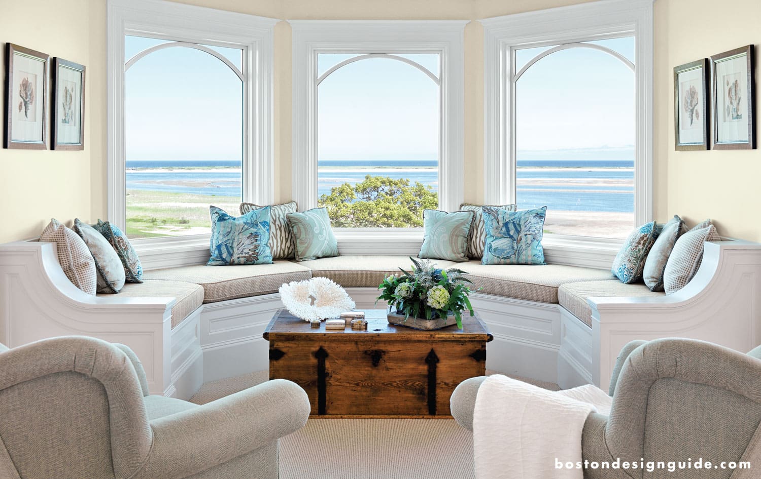 A beautiful alcove provides ample seating an an unobstructed view of the Atlantic