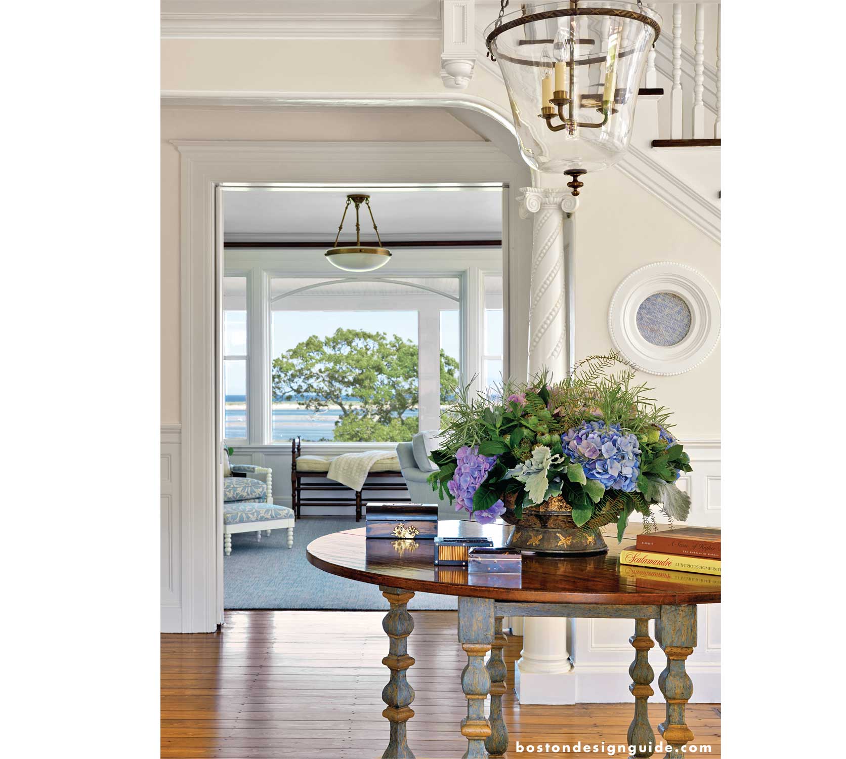 Originally built for the governor of Rhode Island in 1893, “The Grey Ghost” was purchased in 2008 by a family who had admired the property for years. Determined from the start to completely restore the historical landmark to its former glory while creating a relaxed, elegant retreat, the new owners carefully chose their collaboration team utilizing the skill sets of custom builder, Jon Warwell, and designer, Barbara Kotzen of Kotzen Interiors, LLC. “Jon was a fortuitous find for us,” says the homeowner. “I don’t think anyone could have recreated the beauty and grandeur of this home like Jon did because he really understands architectural integrity.” She adds, “Barbara’s been our ‘go-to’ designer for years, and it’s her singular goal to make you happy with your home. She has a gift for taking your thoughts and turning them into beautiful living spaces.”