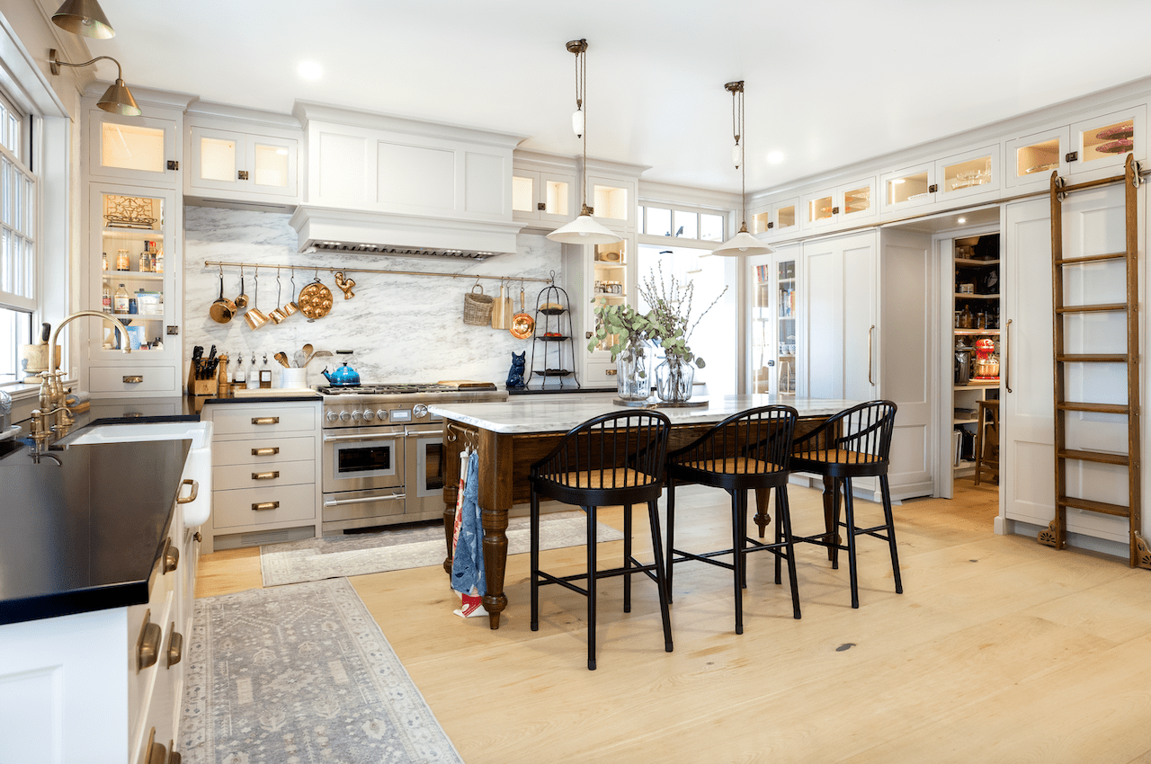 After years of coastal crossings, Marjorie and Brad Hooper found their perfect homesite along Cape Cod’s tranquil Bass River. Partnering with McPhee Associates of Cape Cod—who handled the architectural and construction design—the Hoopers created a new home that honors traditional Cape style while embracing refined, contemporary comfort. Marjorie led the interior design in collaboration with McPhee, blending antiques, bespoke furnishings, and whimsical details into warm, light-filled spaces framed by river views. Classic features like coffered ceilings, tongue and groove paneling, and a brick veneer foundation lend soul and authenticity, while thoughtful touches—from chinoiserie wallpaper in the laundry room to a heron mural in the powder bath—add personal charm. Outside, Executive Landscaping tied the home to its setting with curated plantings and sightlines that celebrate the home’s historic detailing.