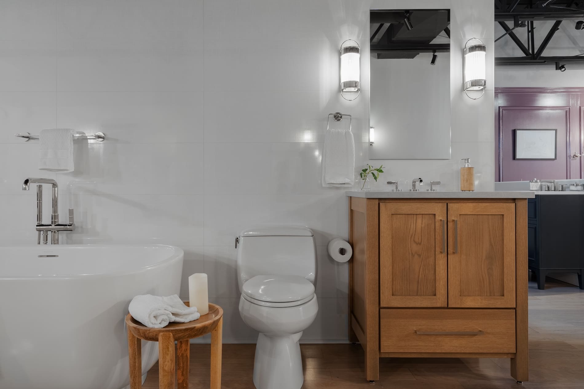 Our showrooms features vingettes of inspirational displays with full shower, vanity, and tub setups. Current design trends are highlighted througout the spaces. The staff has decades of experience and works with your project team to ensure your selectives are both beautiful and technically sound. Visit our website to book your appointment today and follow our social media for the most current updates and design inspiration.